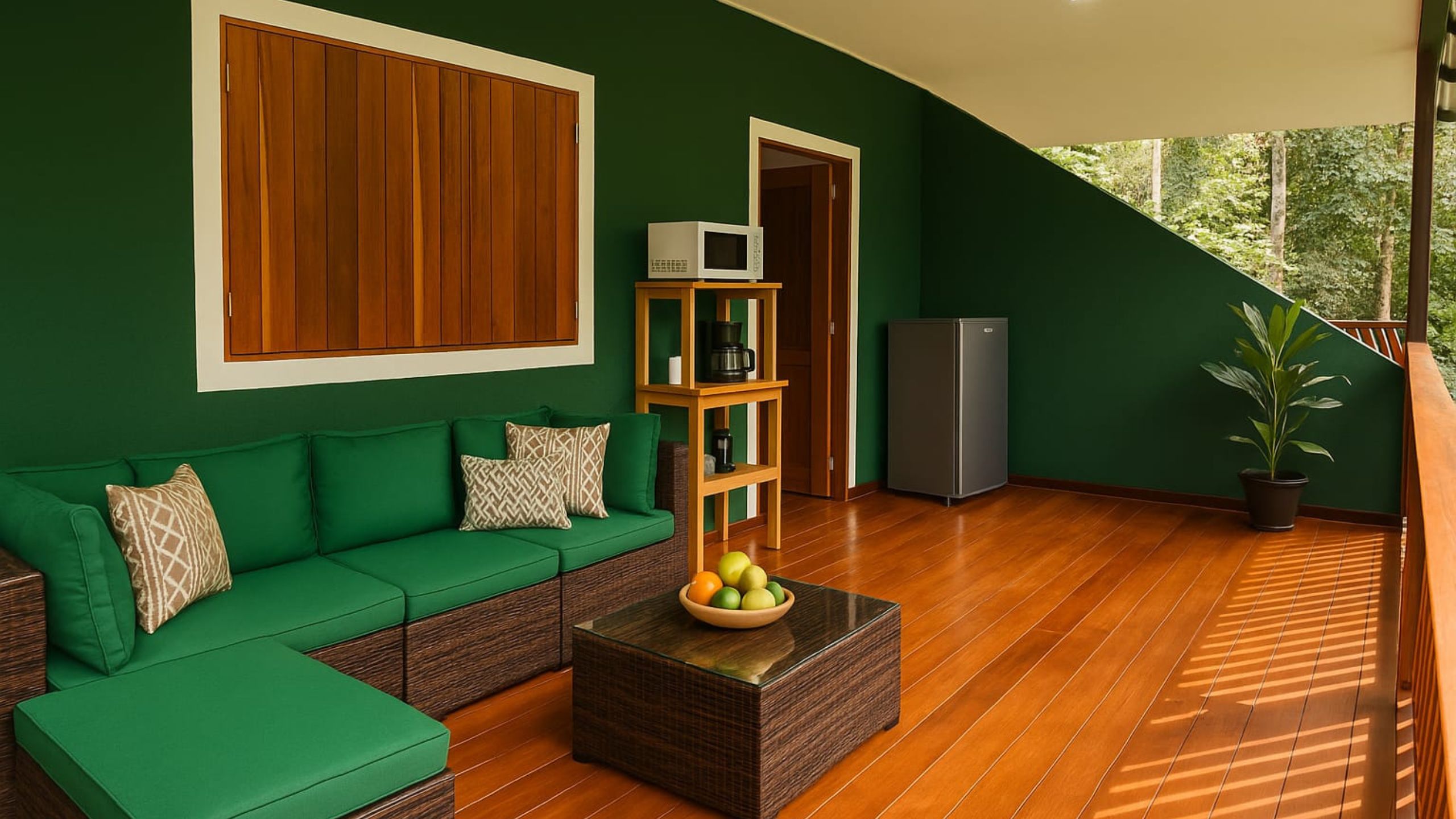- Common areas: cozy lounge to relax or socialize (no TV), gardens, wildlife observation trails, and outdoor jungle shower