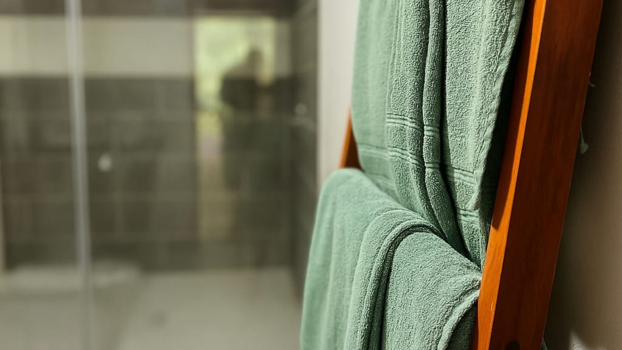 - Bathroom: spacious with shower and hot water (hybrid solar/network system). Biodegradable amenities, towels, and hair dryer provided